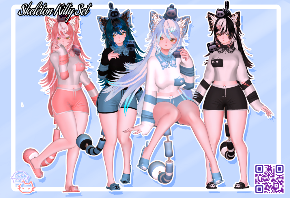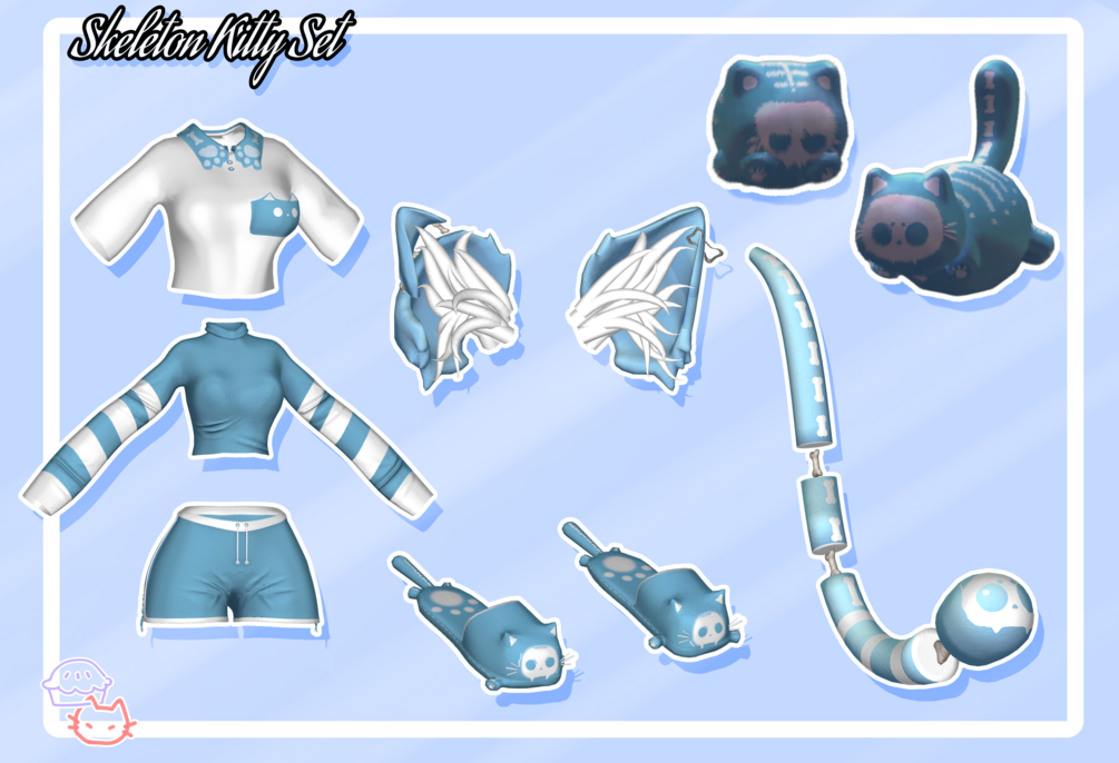 Skeleton Cat Set (Tail&Ears,Outfit, 2 Plush)